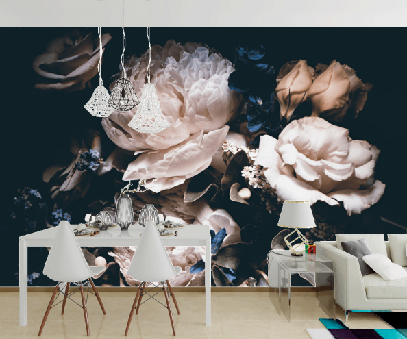 Фотообои Красивые цветы на черном фоне