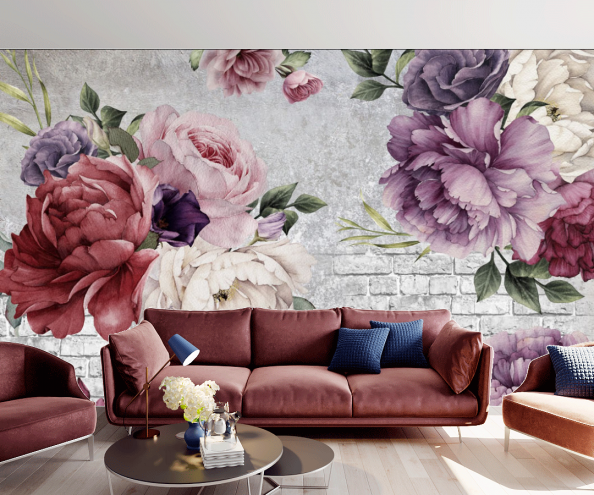 Фотообои Винтажные цветы и стена бордо