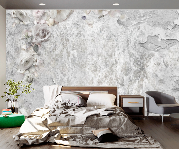 Фотообои Серая стена и цветы