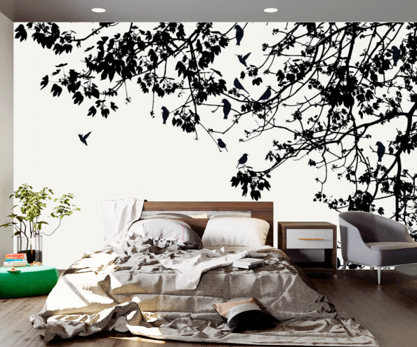 Обои с деревьями используются для оформления гостиной, спальни, но также такой мотив будет уместен и в кабинете. Ведь так важно периодически отвлекаться от работы погрузиться в волшебную атмосферу уюта и гармонии.