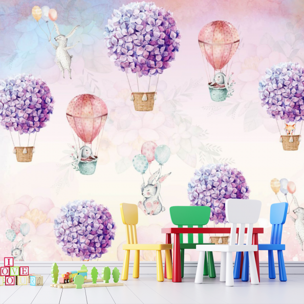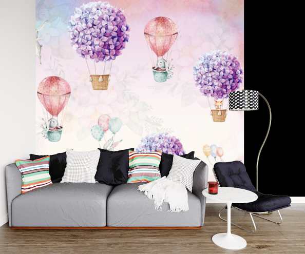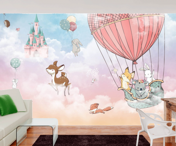 Фотообои зверушки на воздушном шаре