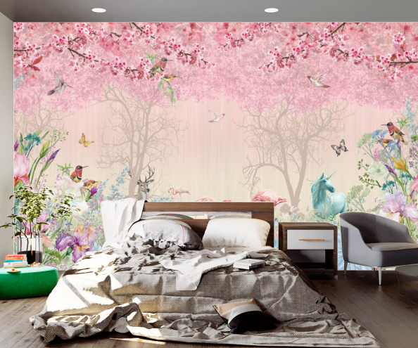 Фотообои фламинго в сказочном лесу