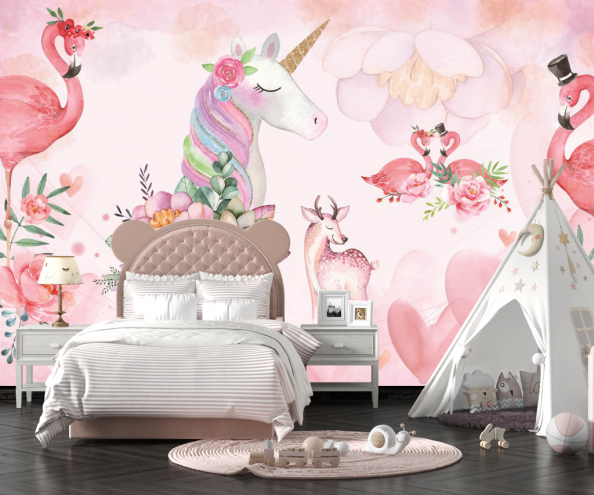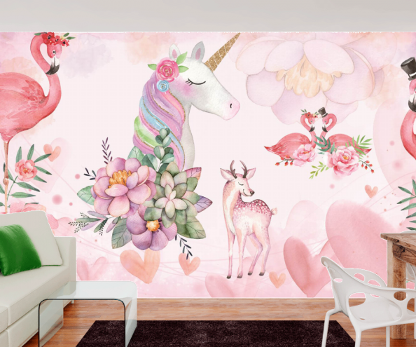 Фотообои сказочный единорог и фламинго