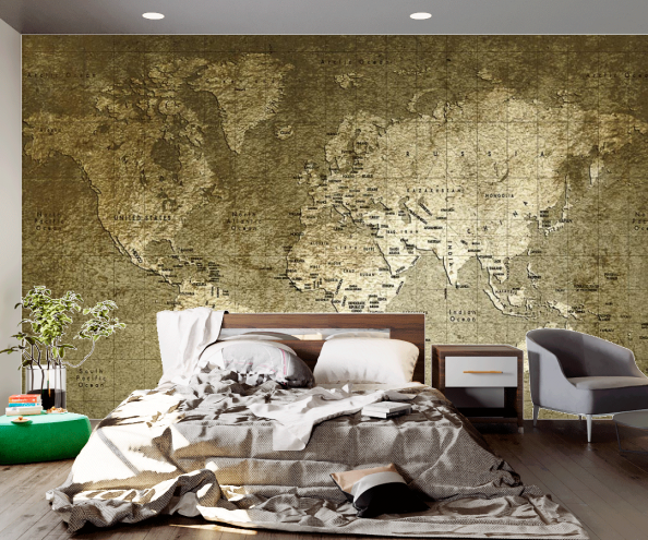 Фотообои Золотистая карта мира