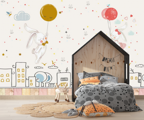 Фотообои Зайки на воздушном шаре
