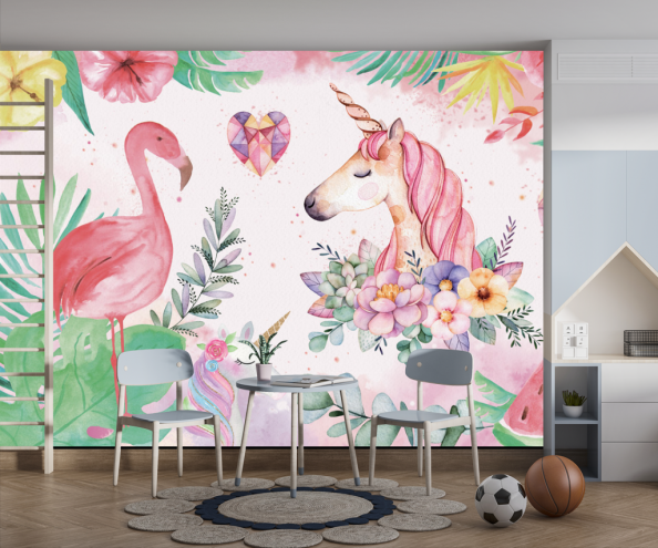 Фотообои Детские единороги и фламинго