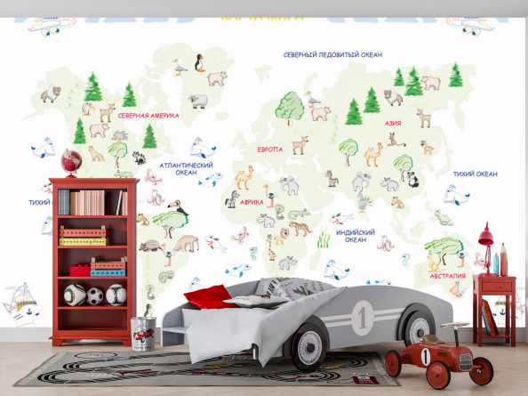 Фотообои Животные на карте