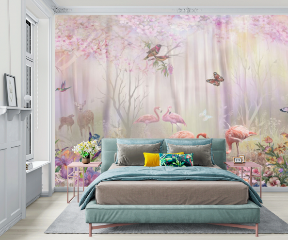 Фотообои с фламинго в сказочном лесу