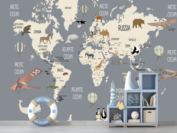 • Фотообои Серая детская карта