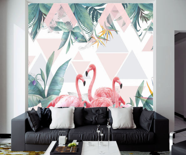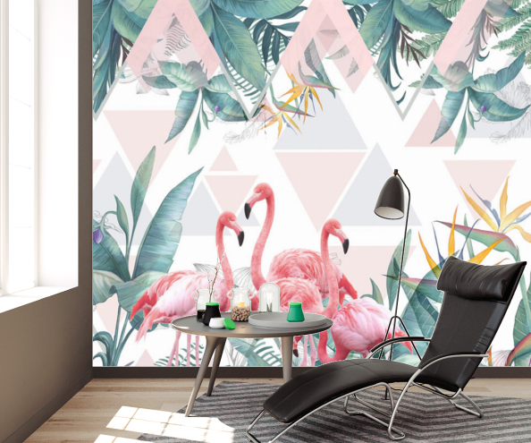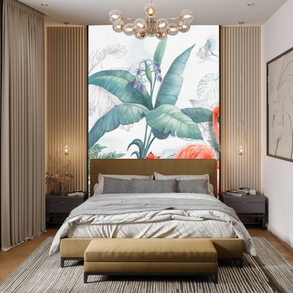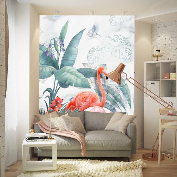 Фотообои Фламинго и тропические листья