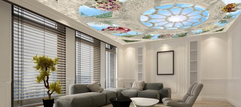 Обои помогают сохранить приятный вид потолка долго время. Этот материал имеет много плюсов использования: