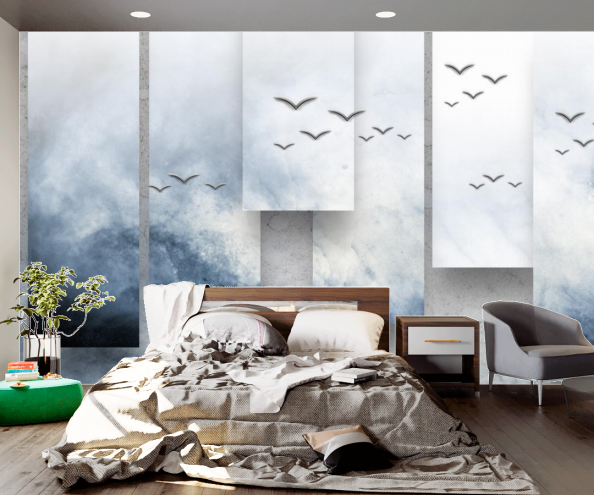 Фотообои 3d волна с птицами