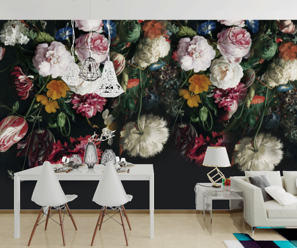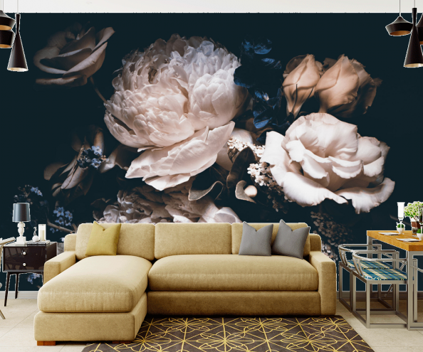 Фотообои Красивые цветы на черном фоне