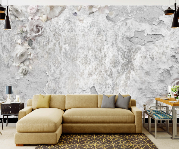 Фотообои Серая стена и цветы