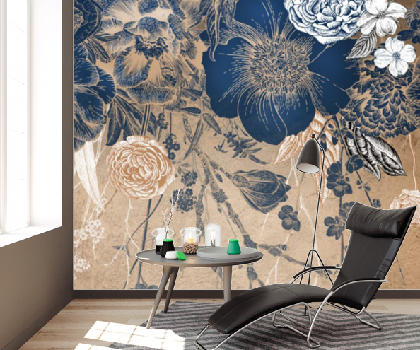 Фотообои Винтажные синие цветы