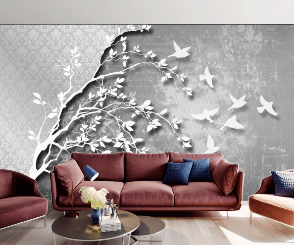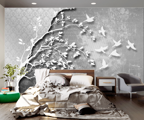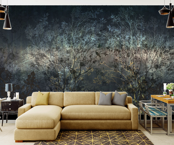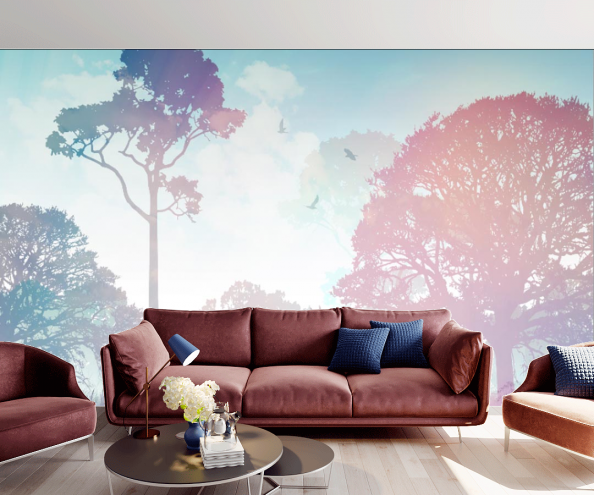 Обои с деревьями используются для оформления гостиной, спальни, но также такой мотив будет уместен и в кабинете. Ведь так важно периодически отвлекаться от работы погрузиться в волшебную атмосферу уюта и гармонии.