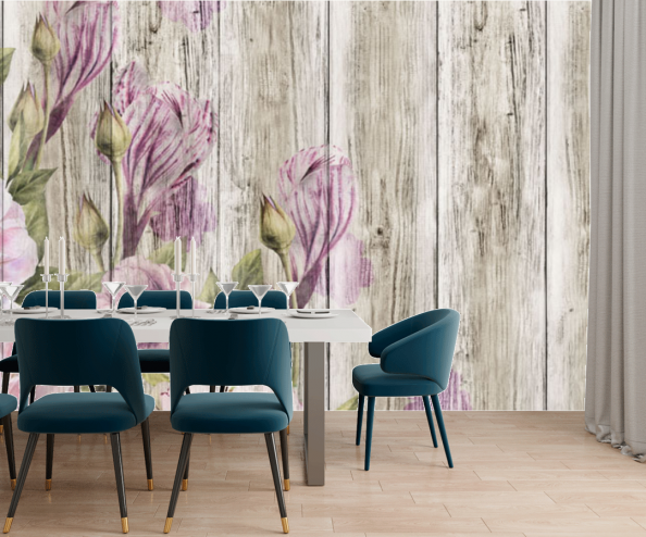 Фотообои Винтажные цветы на досках