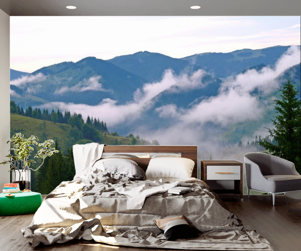 Конечно такие фотообои не заменят полноценный отдых за городом, но они создадут благоприятную атмосферу в доме, успокоят разгоряченные нервы. Такие обои можно использовать не просто так фон, но как настоящее произведение искусства, на которое можно смотреть часами. Фотообои с горами и лесом, выполненные с помощью качественной печати можно наклеить только на одну стену. Тогда они будут некоей альтернативой картины. Можно создать целую композицию, обклеив такими обоями сразу несколько стен или даже комнат.