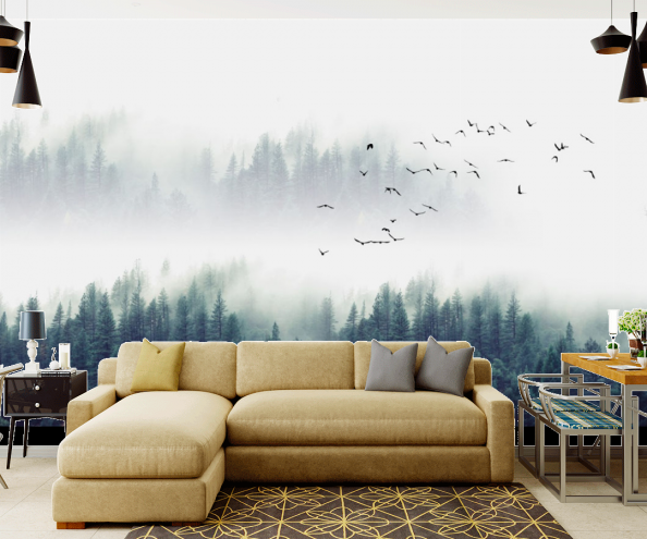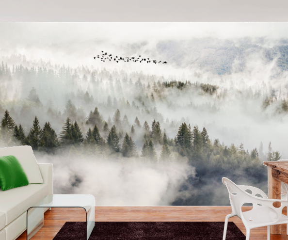 Фотообои Птицы над туманным лесом