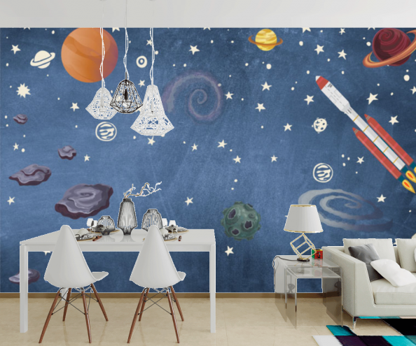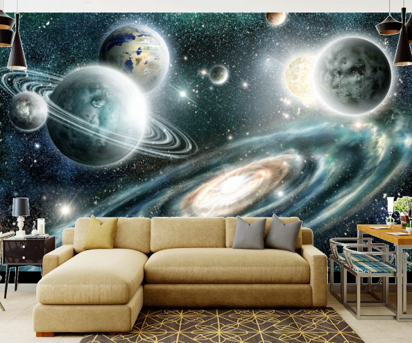 Далекие миры всегда манили человека, не зря каждый ребенок в детстве мечтает стать космонавтом, который открывает новые планеты и звезды! Фотообои космос внесут в атмосферу комнаты всю загадочность и величие неизведанных галактик. Они будут актуально смотреться в спальне, детской. Главные особенности этой тематики: