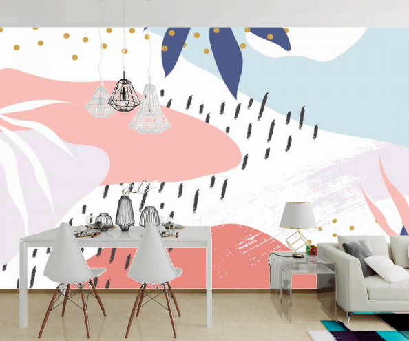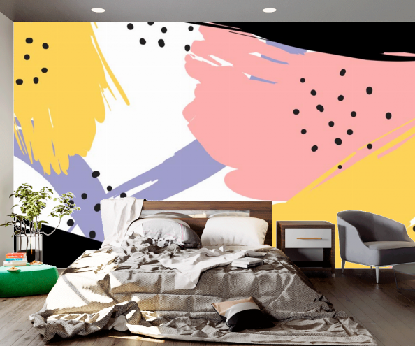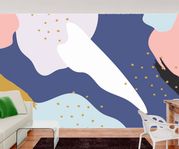 Главный признак обоев с абстрактным изображением – отсутствие четких пропорций и логических завершений. Такие фотообои могут выполнять не только фоновую роль, но и акцентную – то есть, быть главным элементом интерьера. Яркие фотообои серии “Мемфис” прекрасно справятся с этой задачей, задав тон всей комнате. Они будут привлекать к себе внимание в первую очередь. Хорошим решением будет наклеить фотообои с желтой и розовой расцветкой в гостинной или рабочем кабинете. Они оживят гостиную, и будут мотивировать и наполнять энергией в рабочем кабинете. Фотообои с темно-синей основой будут неплохо смотреться в спальне, создавая успокаивающий и умиротворяющий эффект.
