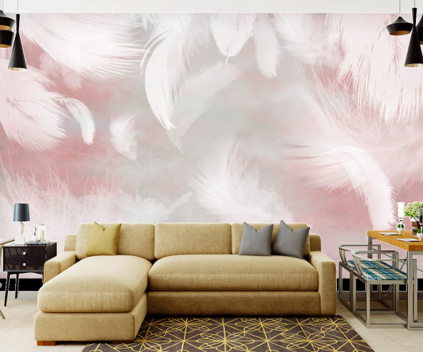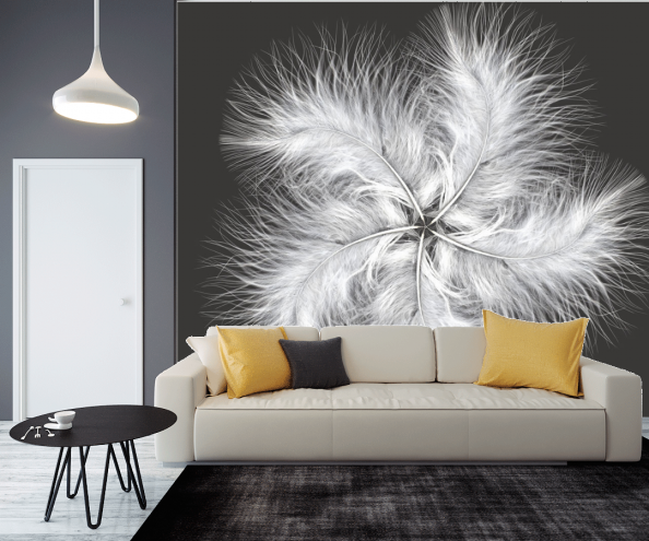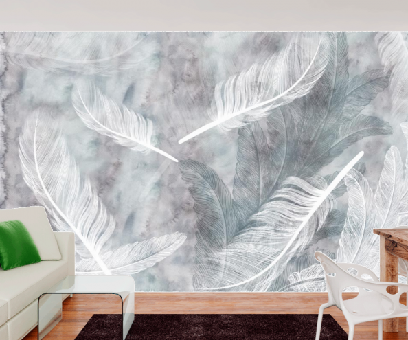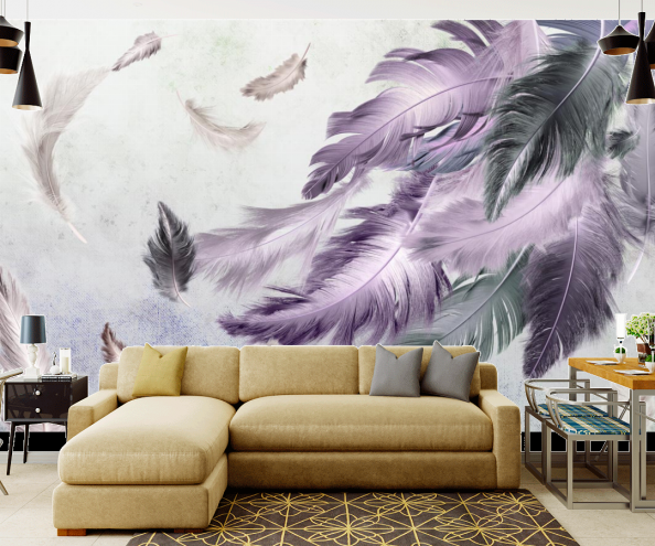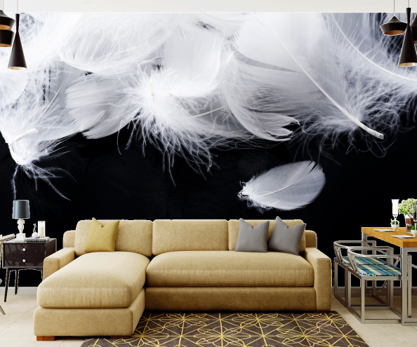 Последнее время популярностью пользуются фотообои 3Д. Они помогают создать ощущение реальности и невероятной свободы. Классический интерьер дополненный фотообоями перья совершенно изменится и станет более современным.