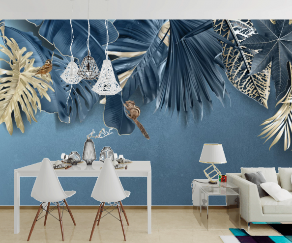Фотообои Синие тропические листья