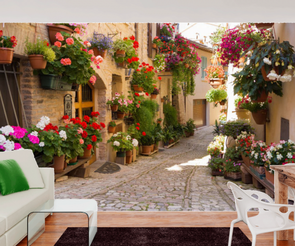 Фотообои Старинная улочка с цветами