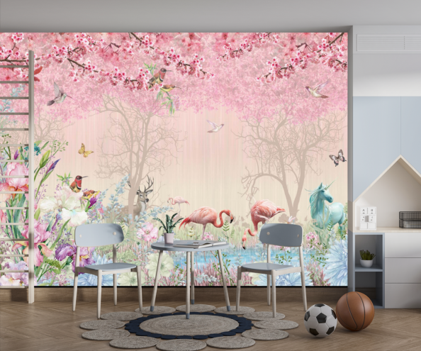 Фотообои фламинго в сказочном лесу