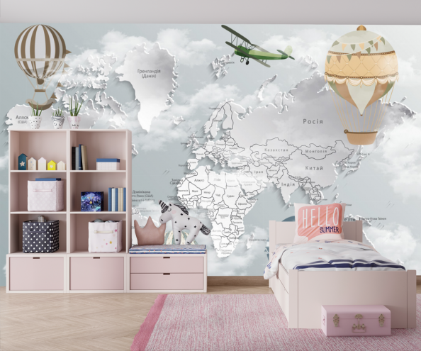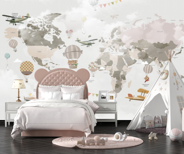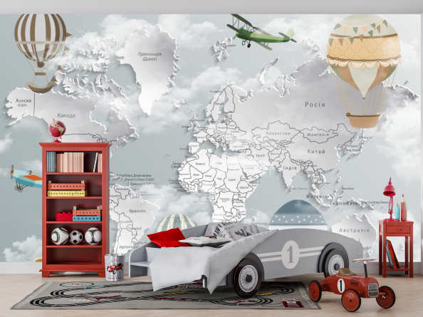 Перейти в блогФотообои Самолеты и шары на фоне карты