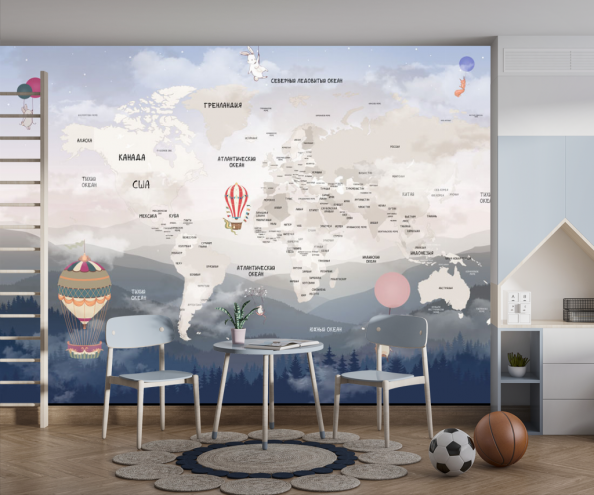 Фотообои Детская карта с воздушными шарами