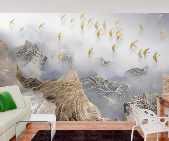 Золотистые обои подчеркивают планировку, благодаря своей яркости скрыть неровности на стенах, наполнить помещение дополнительным светом, отражая солнечные блики.