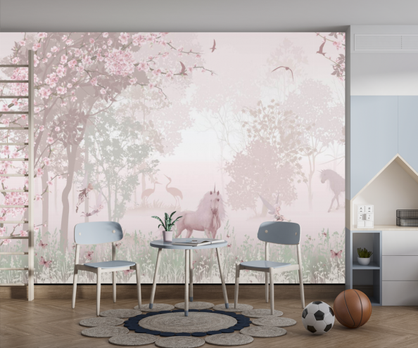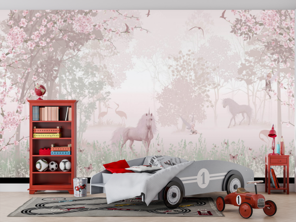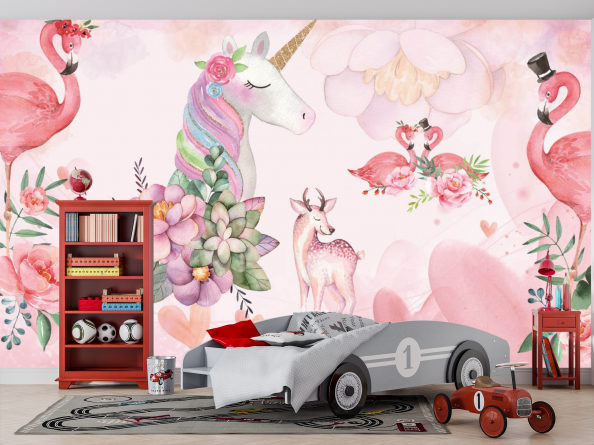 Фотообои сказочный единорог и фламинго