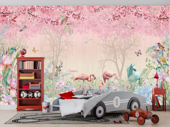 Фотообои фламинго в сказочном лесу