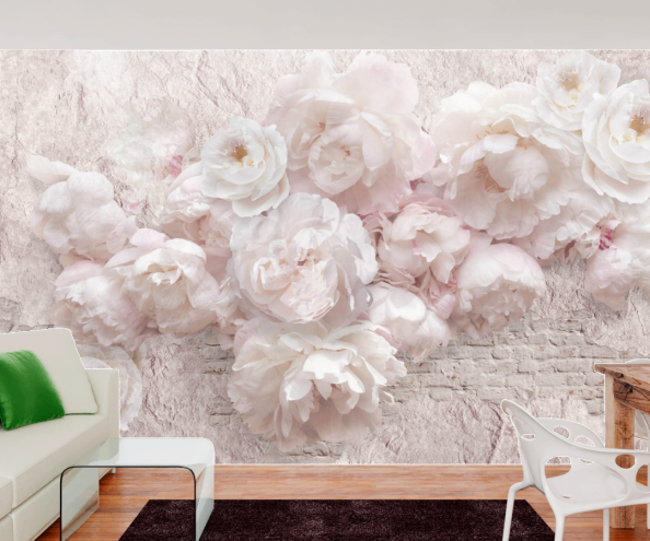 Фотообои красивые пионы на фоне стены