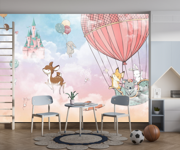 Фотообои зверушки на воздушном шаре