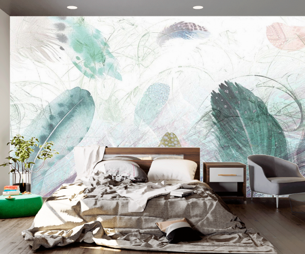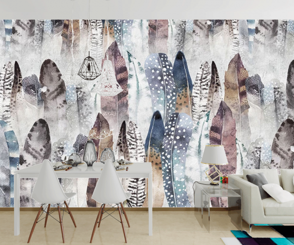 Фотообои Цветные перья с эффектом потертости