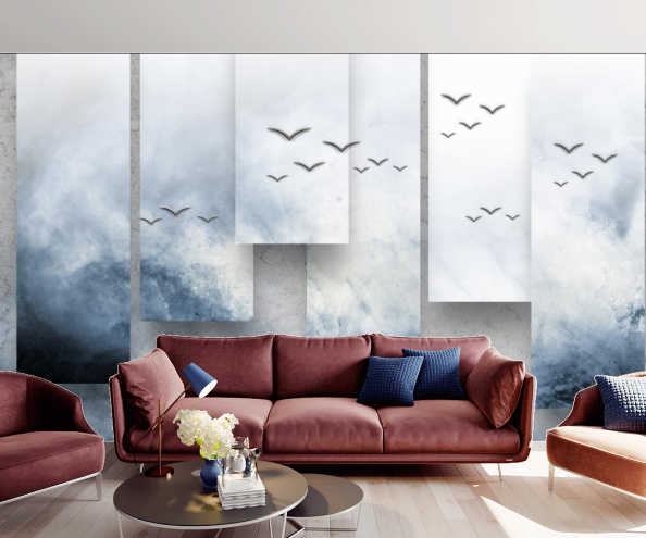 Фотообои 3d волна с птицами