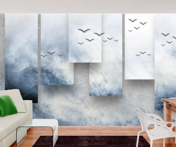 Фотообои 3d волна с птицами