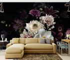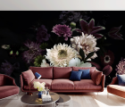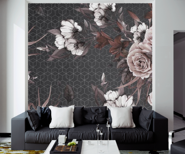 Фотообои Красочные цветы с темным геометрическим рисунком