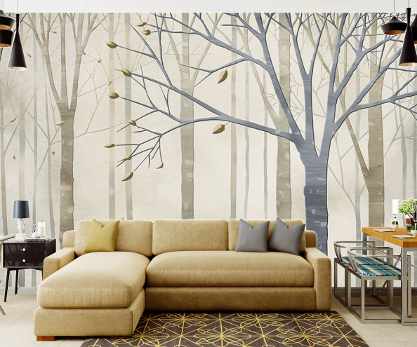 Фотообои Векторные деревья на сером фоне