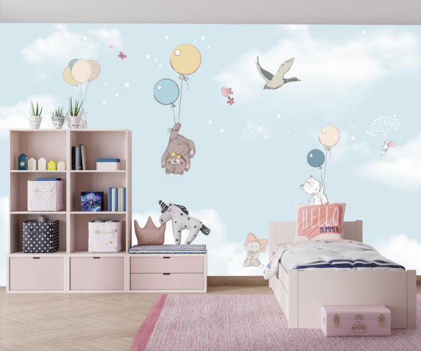 Фотообои Зверушки на воздушном шаре