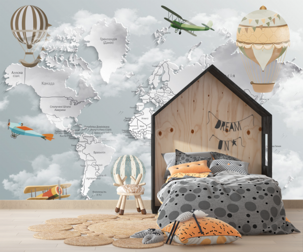 Фотообои Детская карта с воздушными шарами