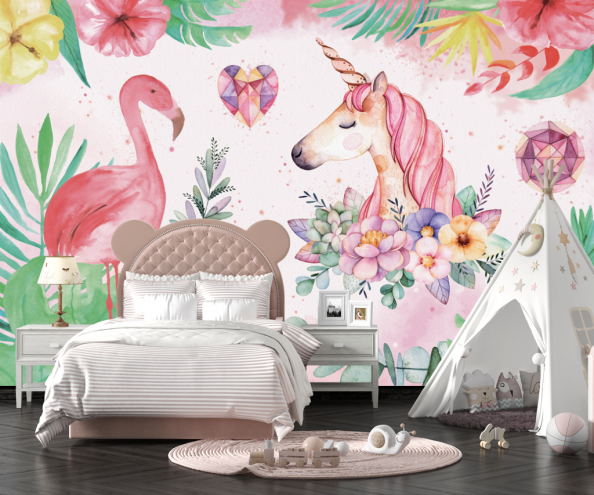 Фотообои Детские единороги и фламинго