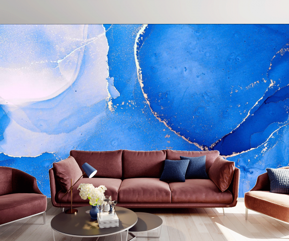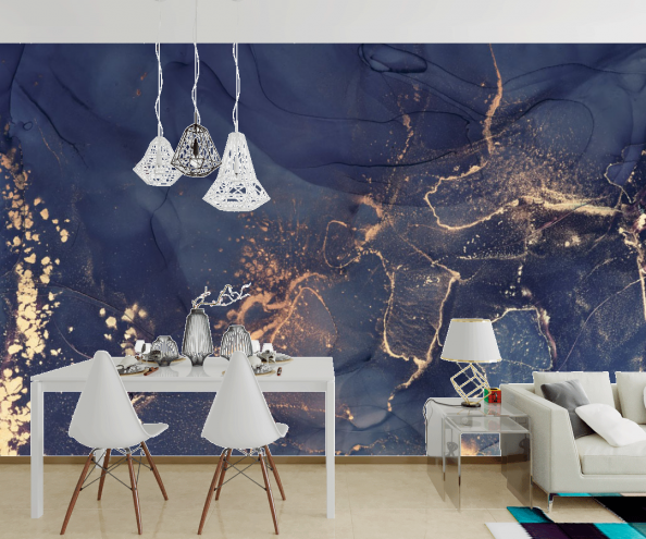 Фотообои Fluid art синий с золотом