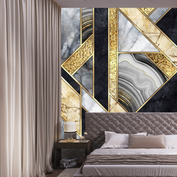 • Фотообои Геометрия из черного мрамора с золотом