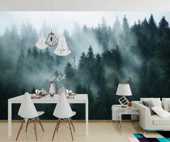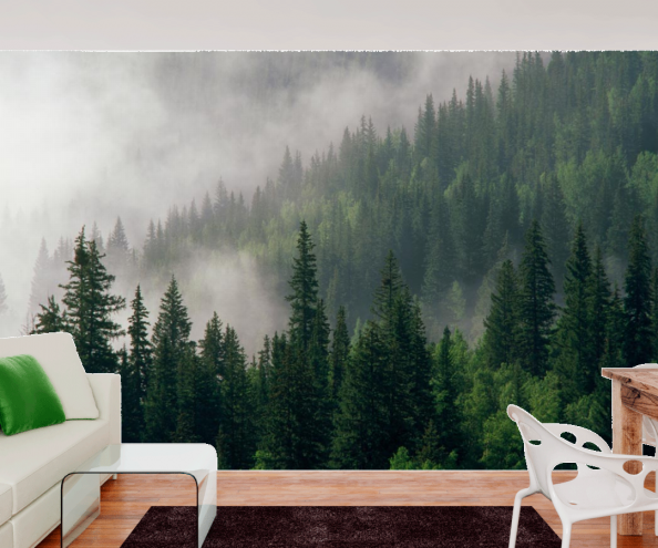 Фотообои Зеленый лес в тумане