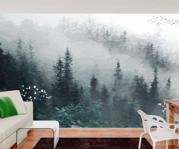 • Фотообои Лес в горах и туман