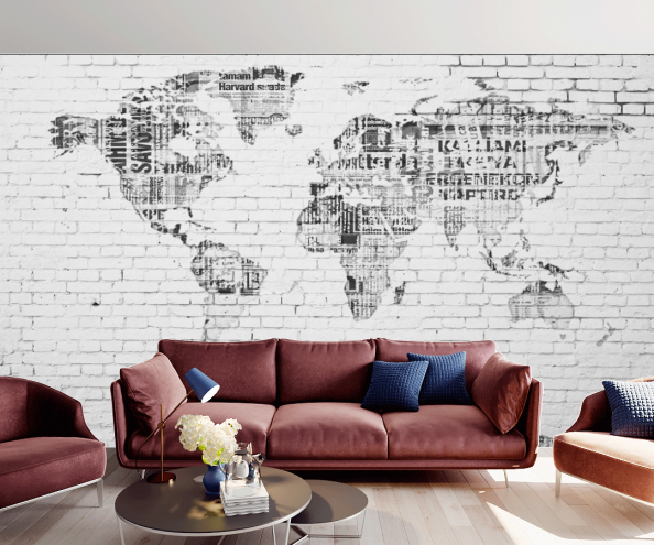 Фотообои Карта мира на кирпичной стенке