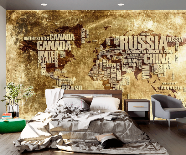 Фотообои Золотистая карта мира
